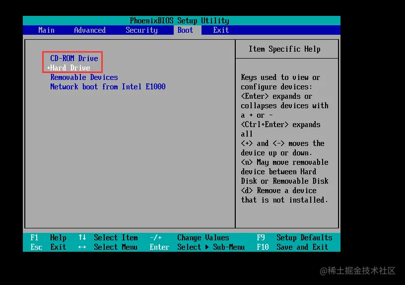 12、设置开机启动项,第一个为CD/DVD,第二个为硬盘。