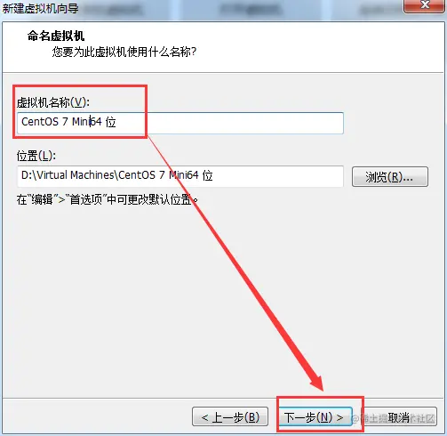 5、虚拟机名称更改默认的名称,位置中的目录名称会随之变更,然后“下一步”。