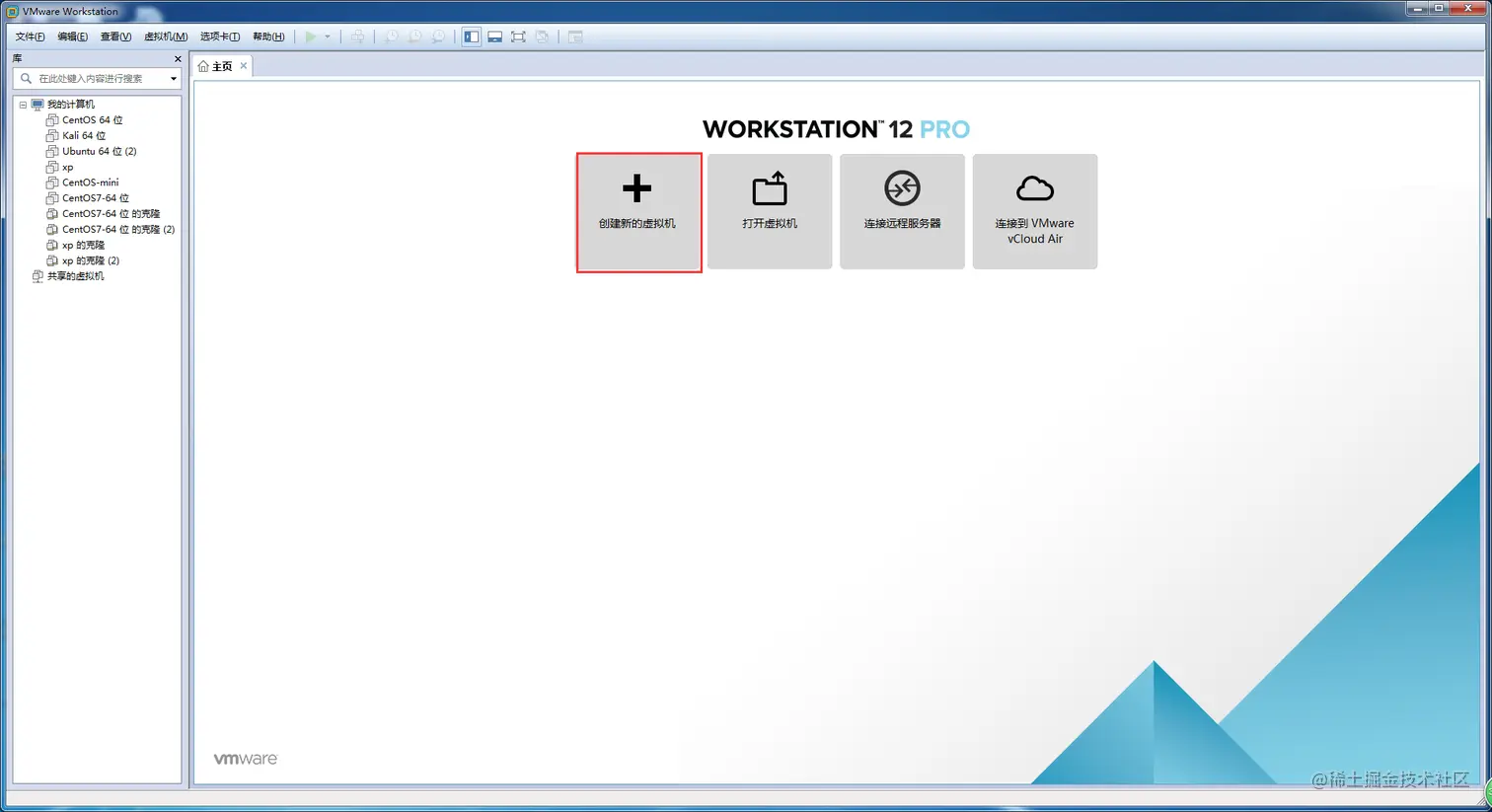 1、打开虚拟机,选择“创建新的虚拟机”。