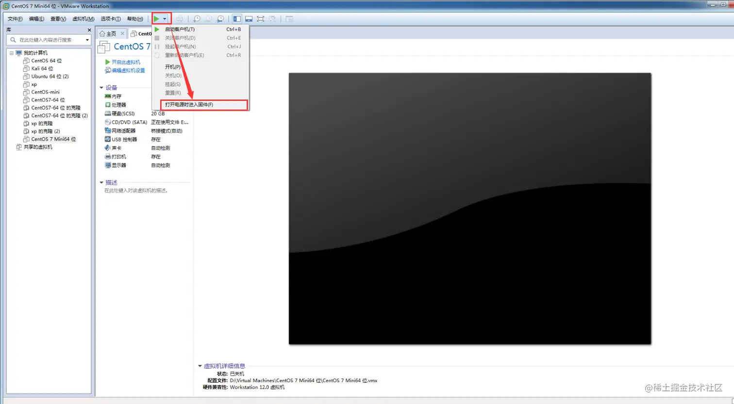 或者虚拟机直接关机,然后再设置去掉这个CD/DVD的连接状态,然后再开机,效果一样。