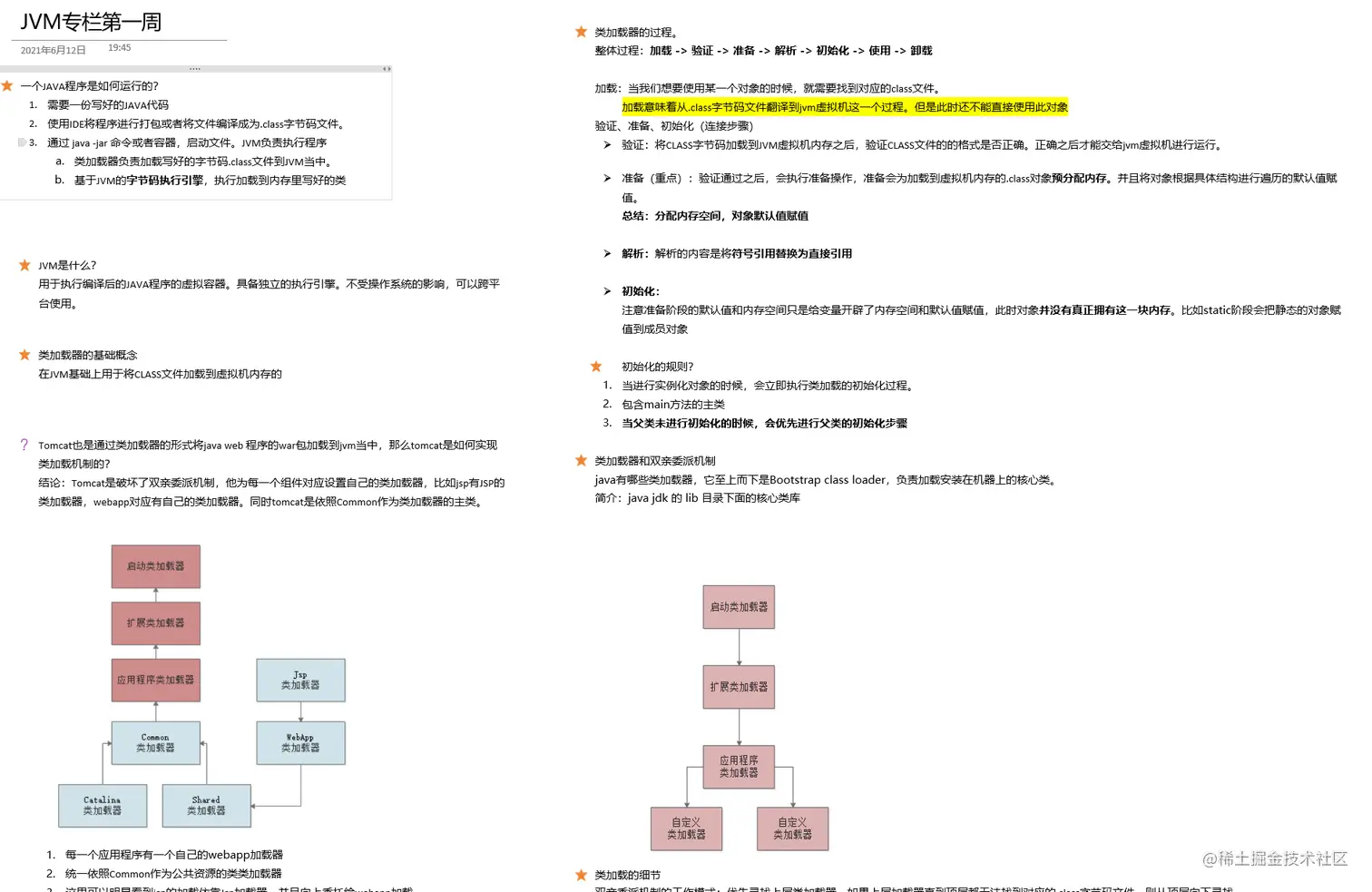 比如下面是用onenote做的一个JVM的大纲,当然我做笔记是非常自由奔放的,大家不要学我把笔记做成这样: