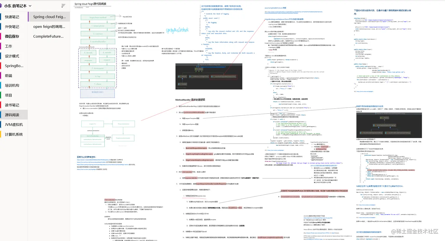 下面是一个源码阅读的,当然内容只有我知道写了啥,具体的内容在之前已经整理成文章了是关于spring cloud openFeign的,当然也是不要学我这种“鬼斧神工”的笔记方式,只有我看得懂写了什么: