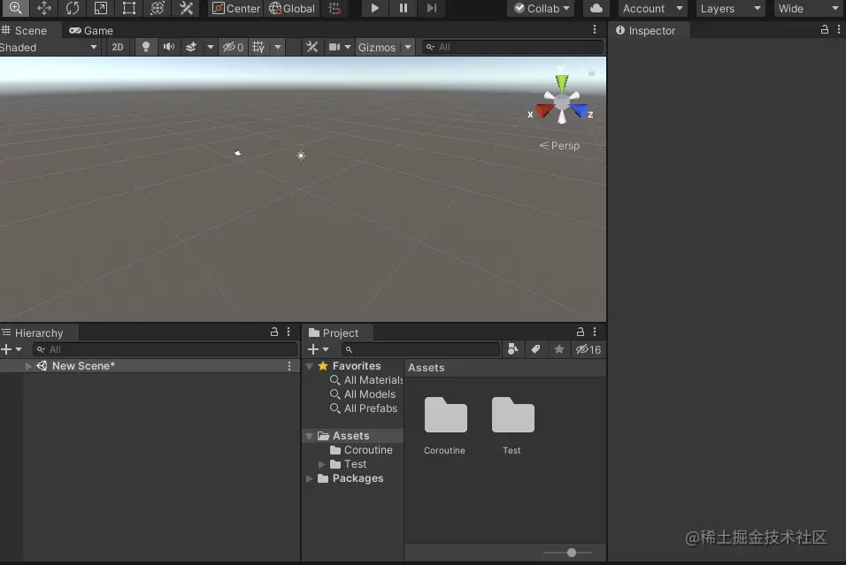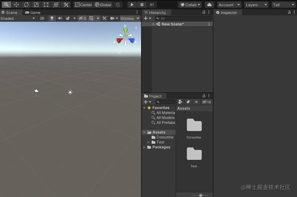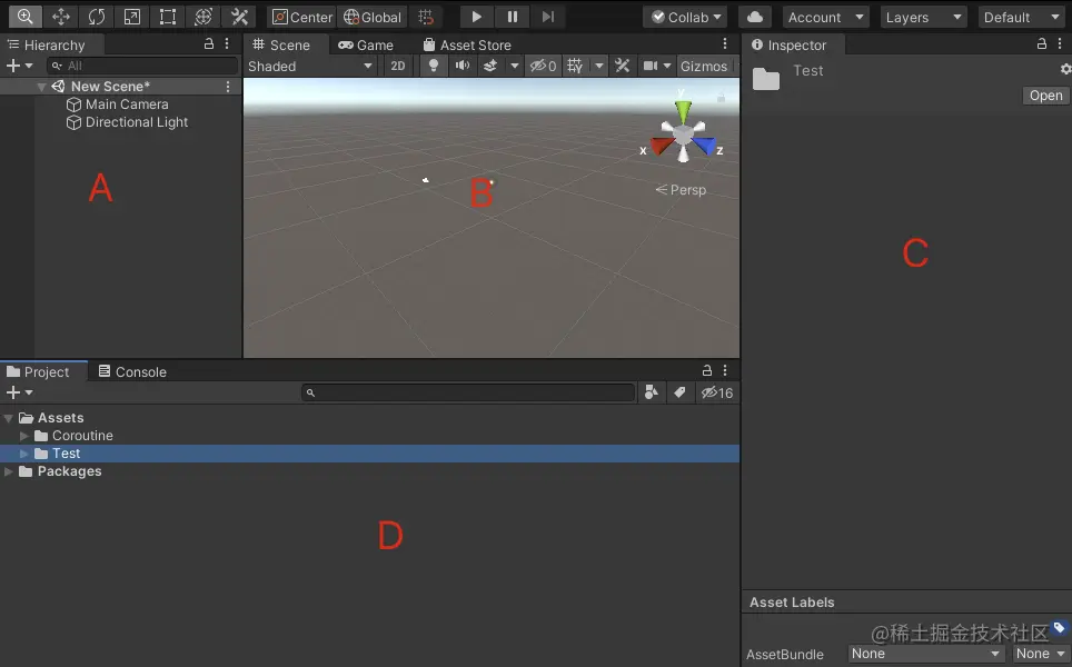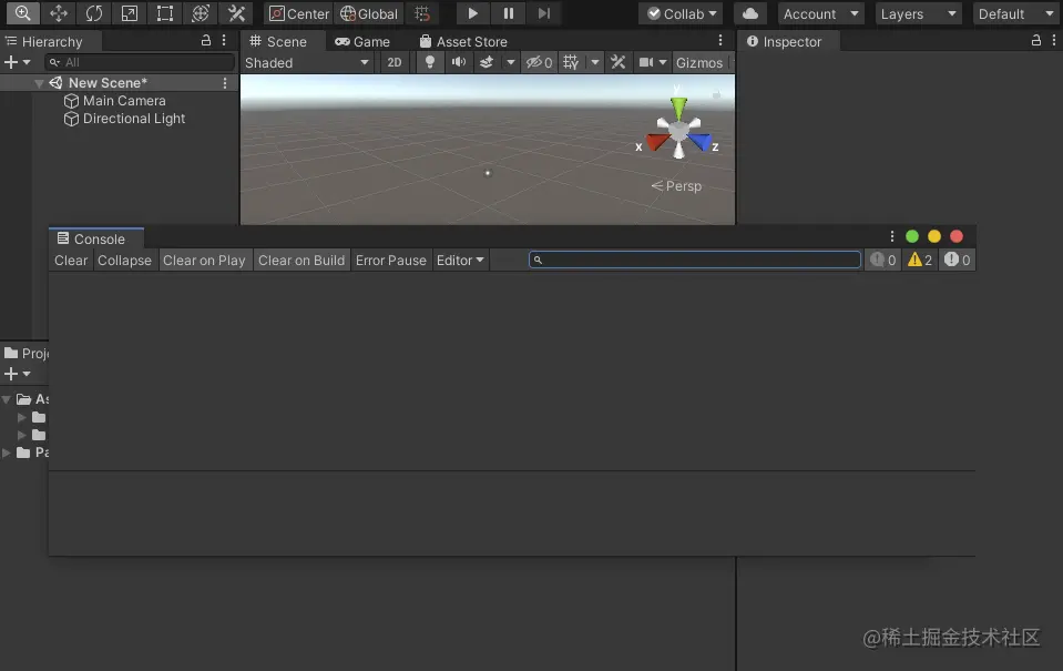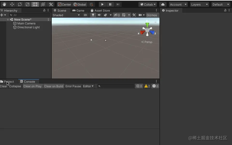 新建Unity工程打开后,编辑器是这样的: