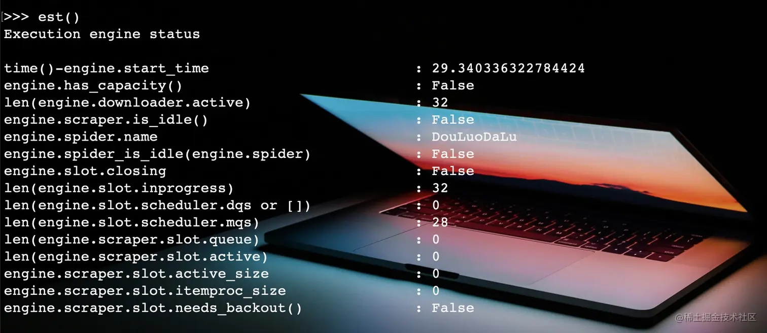 启动爬虫之后,使用以下命令进入telnet。