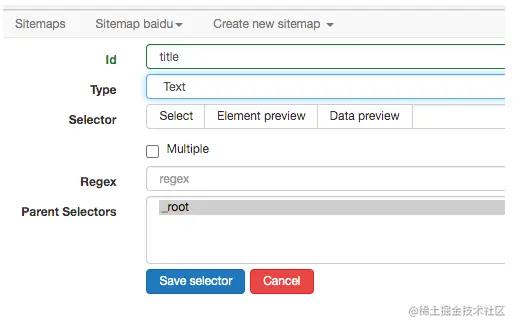 可点击Sitemaps baidu ---->Selectors graph 查看创建的筛选器层级