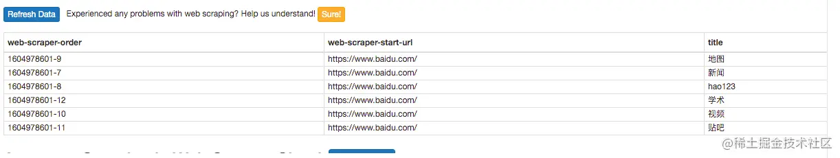 点击Sitemaps baidu ---> Scrape