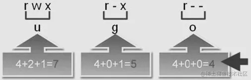 这组3位数中的每一位数字都是由以下表示资源权限状态的数字(即4、2、1和0)相加而获得的总和: