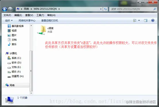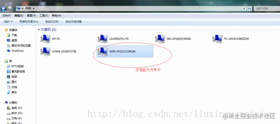1,接收方操作比较简单,双击”网络“,选择共享方电脑,效果如下: