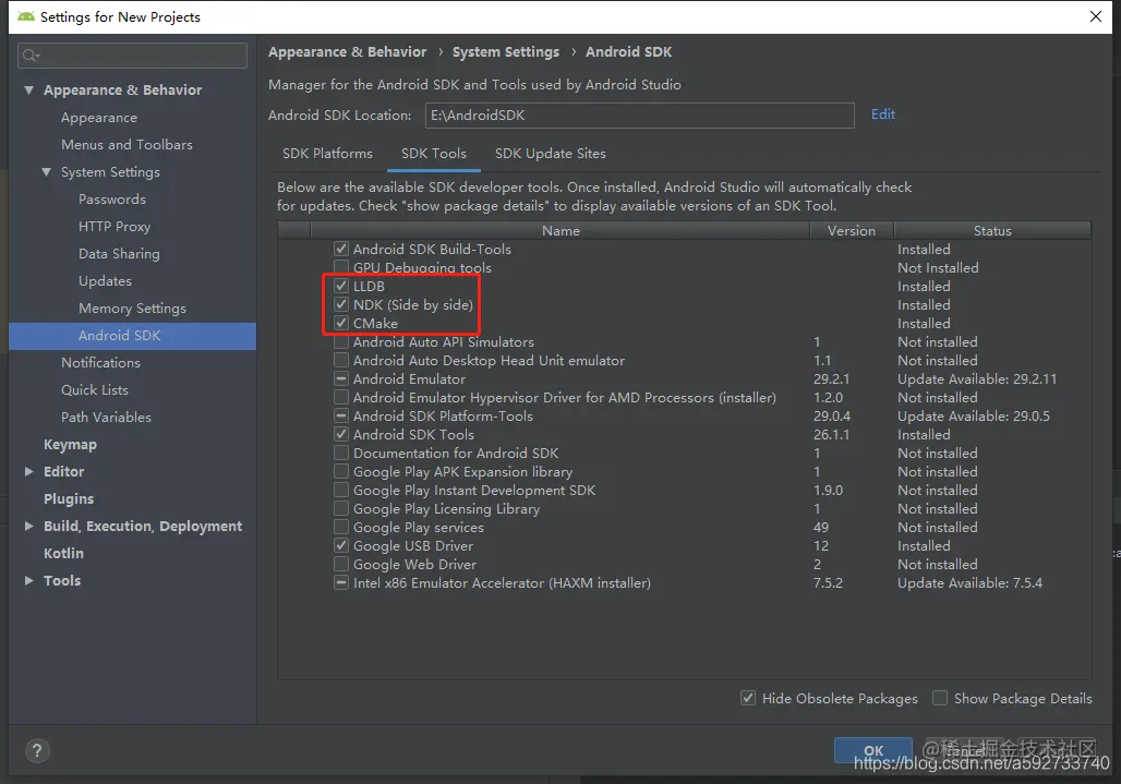 1.第一步,使用SDKManager的SDK Tools安装NDK.