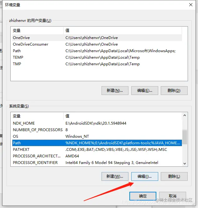 3.3.找到Path系统变量(不需要创建),新建一个%NDK_HOME%,也就是上面NDK_HOME的变量添加进去。