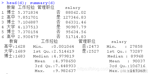 - 与高中毕业生担任管理职位相比,博士毕业生担任管理职位的溢价减少了29501至19952.87(接近2万)。另外,你可以说管理职位产生了20K的基本溢价,而不考虑教育水平。除了这2万外,高中毕业生还能得到3万,使总溢价增加到5万。