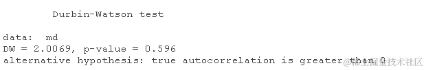 D-W检验值为1.8878,接近2,因此,这个假设也满足。