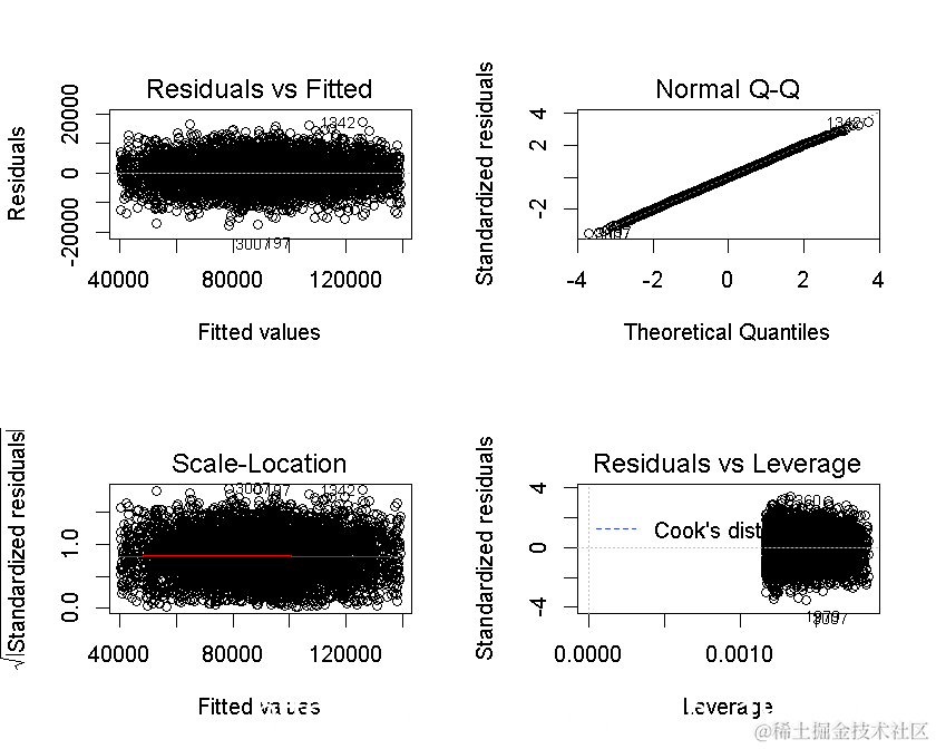 正态Q-Q图看起来是线性的。所以这个假设得到了满足。