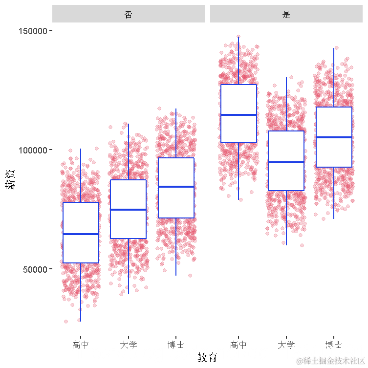 - 你学得越多,你的收入就越多。高中、大学和博士的年薪增长分别为0、10k和20k。