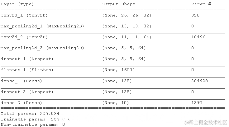 现在我们定义一个CNN模型,其中有两个带有最大池的二维卷积层,第2层带有附加滤波以防止过拟合。然后将输出扁平化,并使用两个密集层连接到图像的类别。