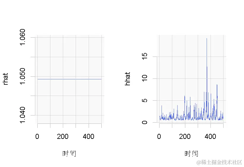 函数garch(),当使用order=参数等于c(0,1)时,成为一个ARCH模型。这个函数可以用来估计和绘制方程3中定义的方差ht,如以下代码和图所示。