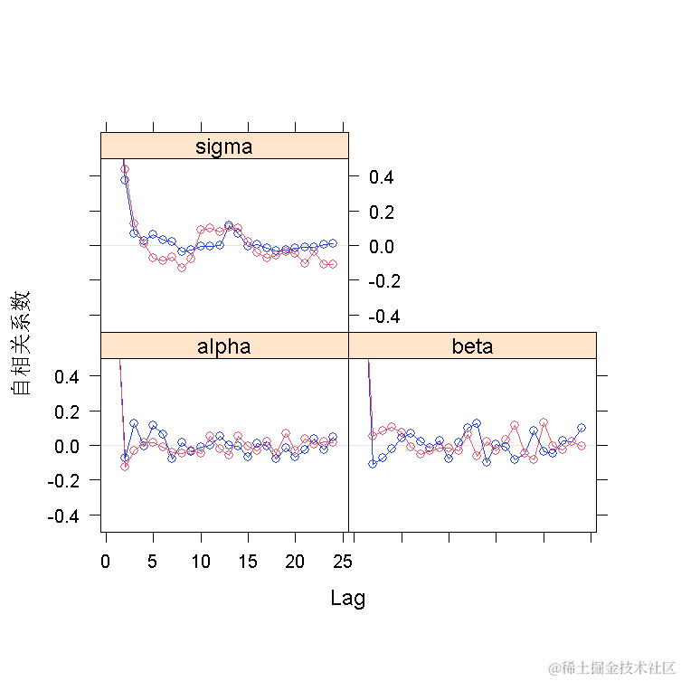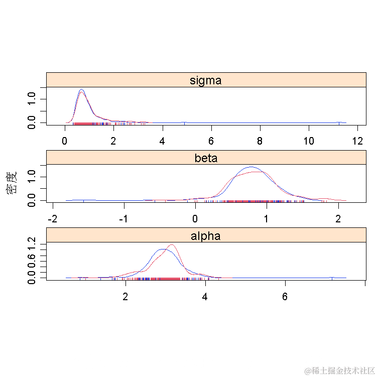 R软件包帮助分析MCMC链。一个例子是线性回归的贝叶斯拟合(α,β,σ