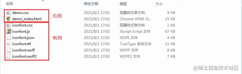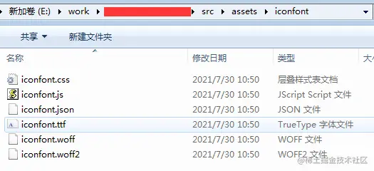 2. 在项目的src=>assets文件夹下新建一个iconfont文件夹,将有用的字体文件放到该目录下。
