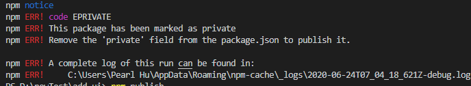 然后将"private"改为 false,否则会报错如下: