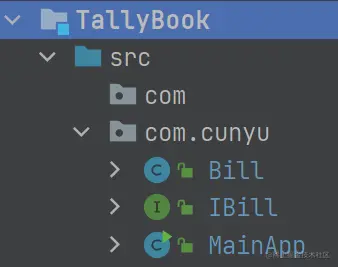 将各个子模块功能实现之后,剩下的就是整合工作了,最后得到我们最后的总体程序结构如下,主要代码均位于 com.cunyu 包下,然后分别是: