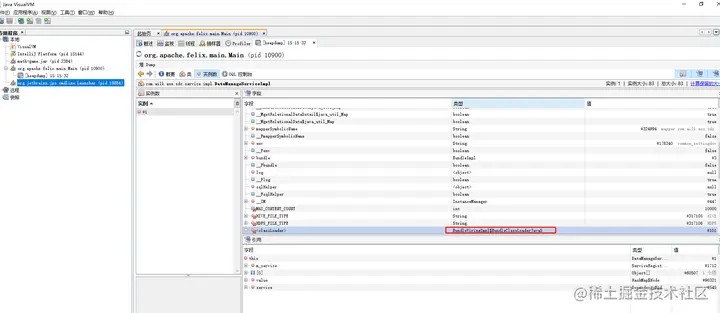 也可以使用相关调试工具查看到到,比如截图中的visualVM: