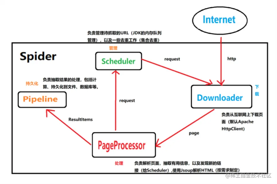 Spider 是爬虫启动的入口。在启动爬虫之前,我们需要使用一个 PageProcessor 创建一个 Spider 对象,然后使用run()启动。 同时,Spider 的其他组件(Downloder、Scheduler、Pipeline) 都可以配置。