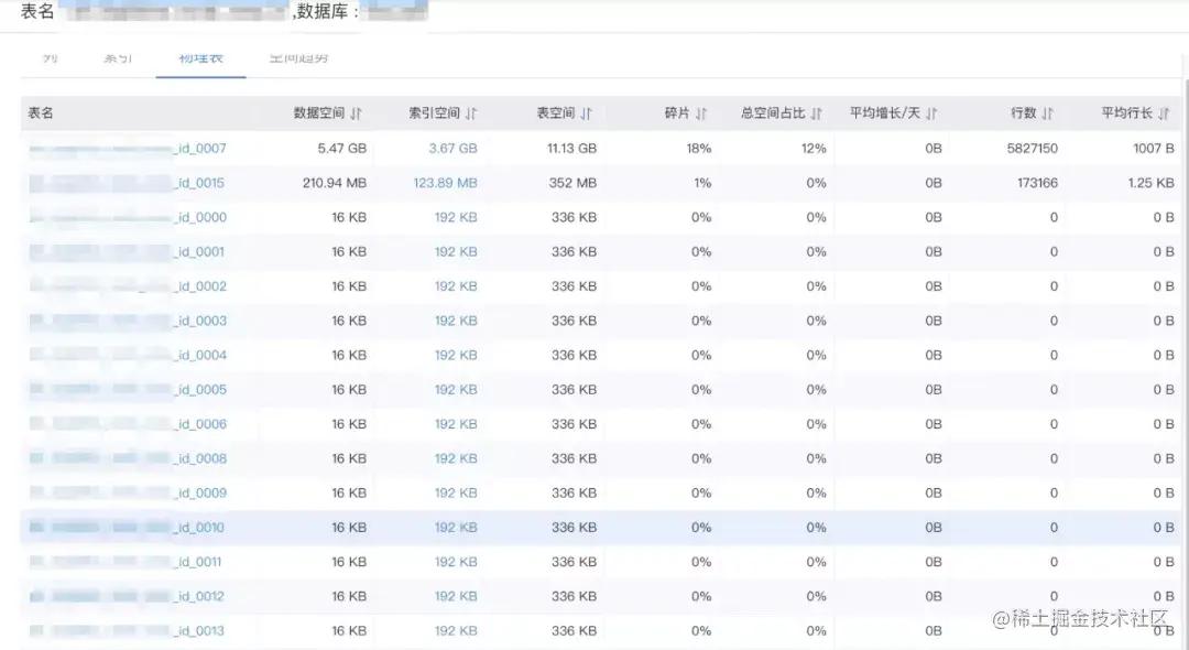 该业务数据分了8个库,每个库分了16张表,通过查看表空间可以看到数据几乎都分布在各个库的某2张表中。分库分表的策略有问题,另外过高预估了业务增量,这个持保留意见。