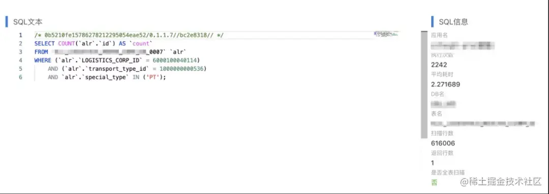 单表创建了idx_logistics_corp_id_special_id的联合索引,但即便这样区分度依然太低,根据实验及业务反馈(logistics_corp_id,transport_type_id)字段组合区分度非常高,且业务存在transport_type_id的单查场景。