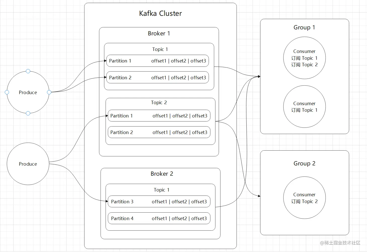 Partition(分区) :Partition 属于 Topic 的一部分。一个 Topic 可以有多个 Partition ,并且同一 Topic 下的 Partition 可以分布在不同的 Broker 上,这也就表明一个 Topic 可以横跨多个 Broker,但是 Partition 不会跨越 Broker