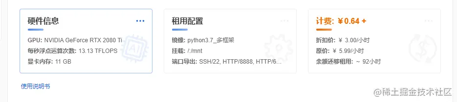 本教程租用的是2080ti,3.7多框架镜像。