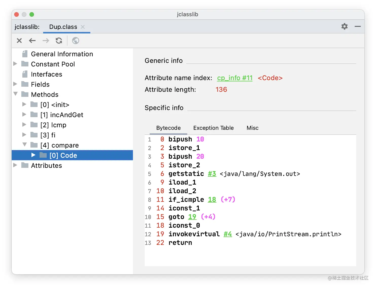 通过 jclasslib 看一下 compare() 方法的字节码指令。