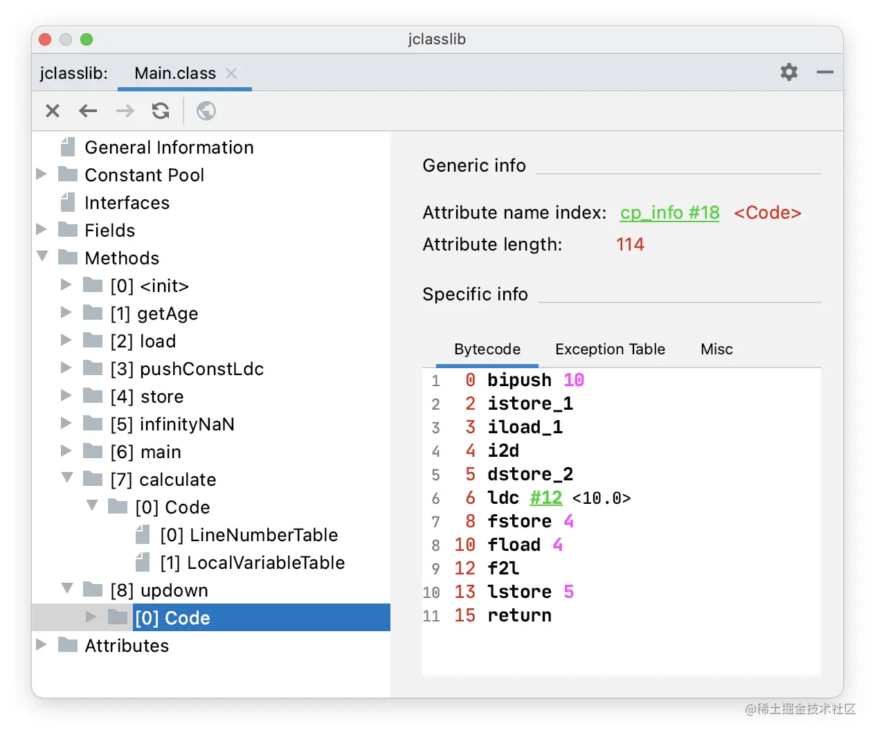 通过 jclasslib 看一下 pushConstLdc() 方法的字节码指令。
