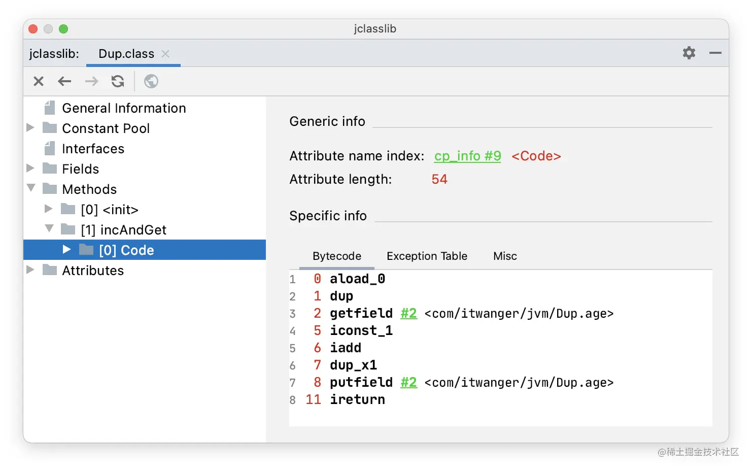 通过 jclasslib 看一下 incAndGet() 方法的字节码指令。