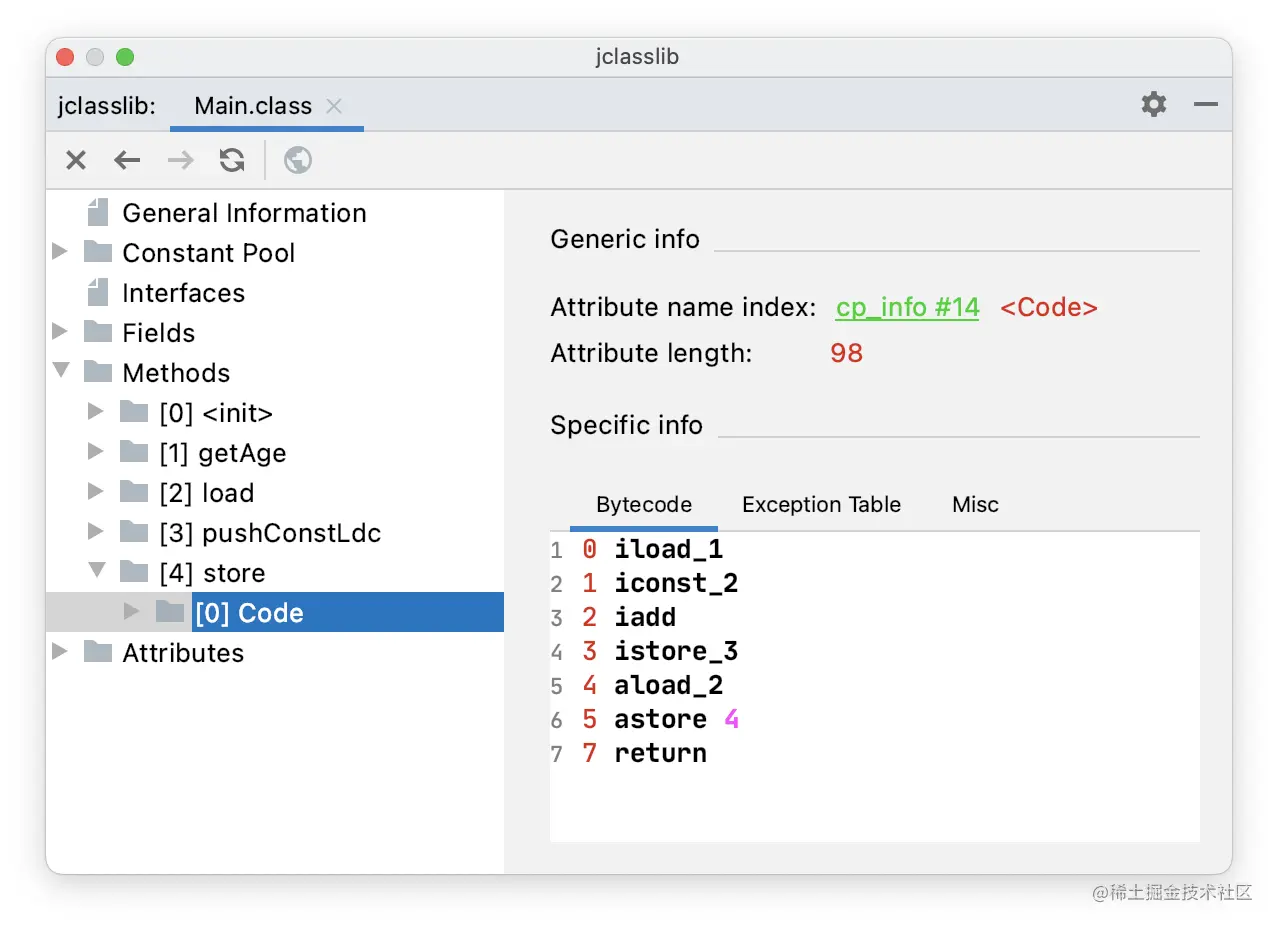 通过 jclasslib 看一下 store() 方法的字节码指令。