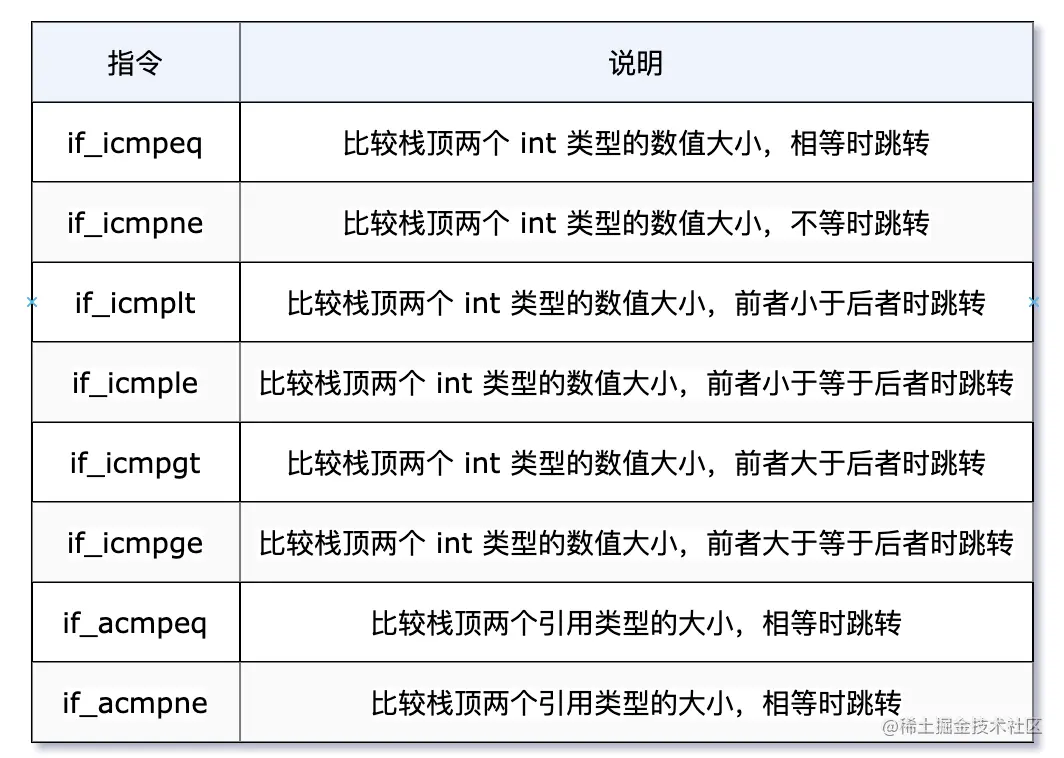 前缀“if_”后,以字符“i”开头的指令针对 int 型整数进行操作,以字符“a”开头的指令表示对象的比较。