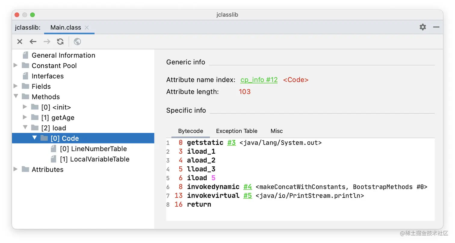 通过 jclasslib 看一下 load() 方法(4 个参数)的字节码指令。