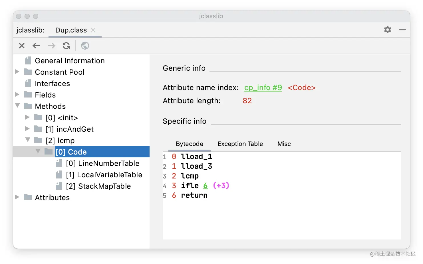 通过 jclasslib 看一下 lcmp() 方法的字节码指令。