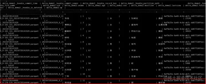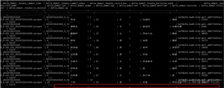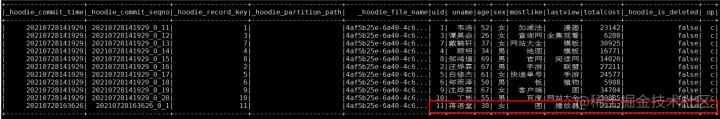 删除操作: delete from hudi.hudisource3 where uid=11;