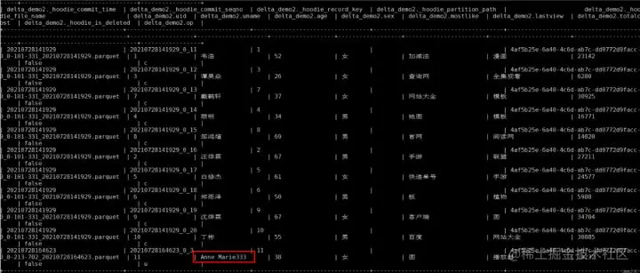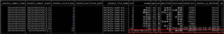 更改操作: UPDATE hudi.hudisource3 SET uname=‘Anne Marie333’ WHERE uid=11;