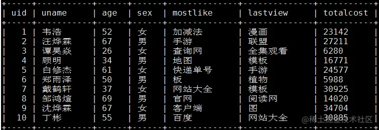 Mysql更新操作对应hive表中查询结果: