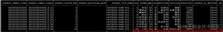 Mysql增加操作对应spark中hudi表查询结果: