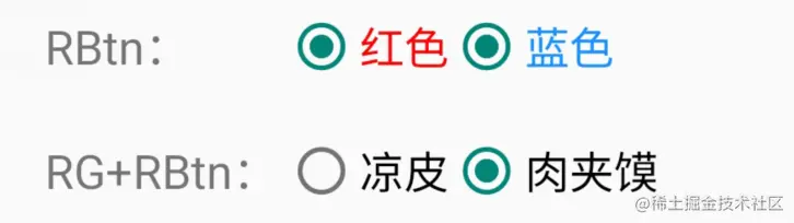 RadioGroup 用于将几个 RadioButton 组在一起形成单选按钮组,实现单选功能,也就是选中一个,会取消其它选项的选中。