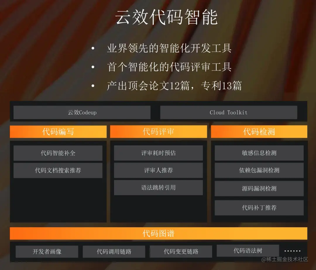 阿里云云效代码智能团队通过AI技术,打造了多款业界领先的智能编码以及代码检测工具,是国内首个将AI能力应用到代码评审场景的团队。此外,我们也通过与学术界的深入合作,通过论文和专利,保持着技术的先进性。下面我们详细介绍。