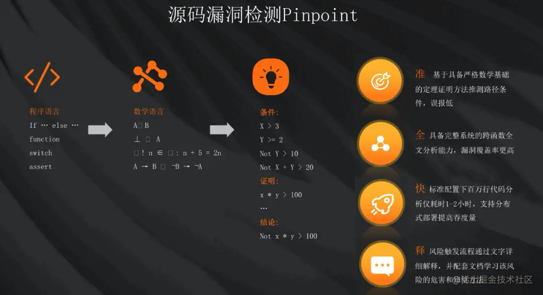 云效Codeup 基于源伞检测引擎,将代码中的数据流和控制流转换成数学语言,然后对数学语言进行定理证明,能够更准确的推导代码中的路径条件,减少误报。同时,它具备跨函数的全文分析能力,比如有多层的函数调用关系,如果最底层的函数存在一些代码安全风险,并且会影响最上层的业务代码,它也能通过将代码的数据流以及函数调用关系,解析为图结构,通过对代码图谱的分析,能够快速的发现潜在的安全风险。此外,我们对检测出来的漏洞信息也会给与详细的解释,告诉开发者每个漏洞在代码中是怎么一步步带来影响的。