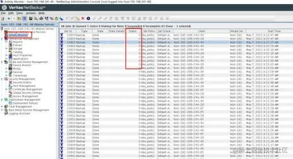 具体可显示多长时间的任务,要看 NetBackup 全局属性中的设置。每个任务有以下几个状态: