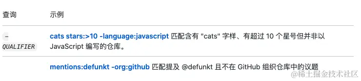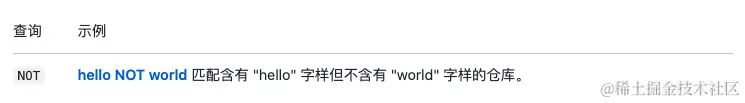 有的时候,我们会遇到一个场景就是包含这个词,但又不想包括另外的词。比如我想搜索一个不是用vue写的chrome插件,那我就可以把搜索条件改成 chrome插件 NOT vue 。这里我们使用 NOT 关键词,就能达到我们想要的效果。