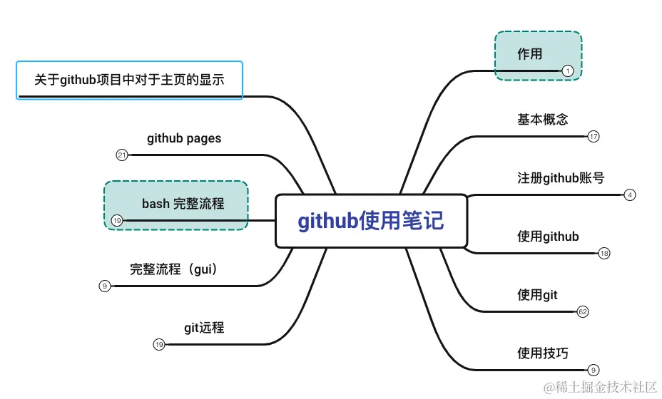 今天我想给大家分享一下使用 GitHub 的一些心得体会。之前我是在分享 GitHub上的一些开源项目,通过这段时间的收集工作,我积累了一些相关的经验在这里分享给大家。 我做了一个思维导图,总结了我的使用经验。