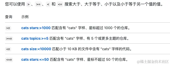 比方说我想找一个 star 超过1000的, 我可以写这样的一个搜索条件: java stars:>1000 这样 GitHub 就能匹配到含有 java 字样、star 数超过1000的。
