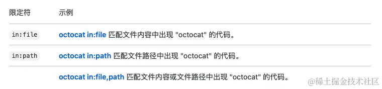 使用 in 限定符,您可以将搜索限制为源代码文件的内容、文件路径或两者。 如果省略此限定符,则只搜索文件内容。