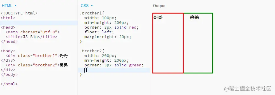上图中,刚开始“哥哥”与“弟弟”重合在一起(“哥哥”是 BFC,“弟弟”不是),当为“弟弟”触发 BFC 后,“哥哥”与“弟弟”骤然分离。